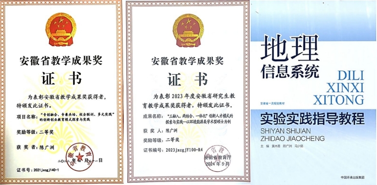 认真组织开展教研活动,支部成员积极改进教学方法,充分运用信息化教学手段,采取线上线下混合式、启发式、案例式、项目研讨式等教育教学方法,着力提高课堂教学质量。积极鼓励青年教师参加各类教学竞赛,以赛促教,通过参加GIS专业教学培训、观摩教学示范课、听教学名师讲座等活动,不断提高党支部成员的教学能力和教学水平。地理信息科学专业获批省级一流专业建设点,支部党员潘邦龙主持国家级一流课程1门、省级精品线下开放课程1门、1门课程获省级线上教学优秀课堂称号;冯少茹1门课程获省级线上教学优秀课堂称号;黄木易出版省级一流规划教材1部;陈广洲主持省级线下一流课程1门,获安徽省高校教师教学创新大赛二等奖2项、三等奖1项,安徽省教学成果奖2项。支部成员主持省部级教研项目10余项。