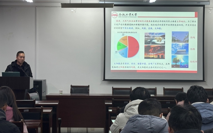 本网讯 12月11日,环能学院第二十一期青年博士论坛在环能楼202会议室顺利举行。本次论坛特邀合肥工业大学“黄山学者”陈俊伟副教授作为主讲嘉宾,报告题目为“锑基硫属化物太阳电池溶液加工制备及晶粒特点”。学院相关专业教师和研究生参加了本次论坛。
