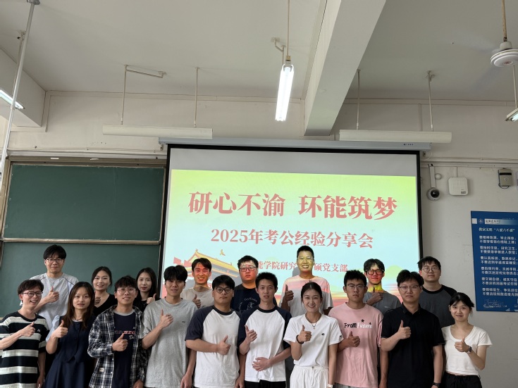 本网讯 526日,环能学院研究生专硕党支部在逸夫楼5201开展了2025年研究生考公经验分享会。本次分享会以“研心不渝,环能筑梦”为主题,特别邀请到2022级土木水利专业研究生陈凡和研究生第一党支部市政工程专业研究生杨丽丽,分享他们在公务员备考过程中的经验所得。