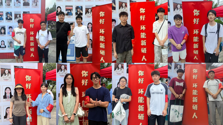 根据活动安排,一项充满仪式感的环节备受期待。志愿者们特意陪同新生来到学院报到处精心设计的“你好,环能新研人”打卡点。立牌设计融合了学院特色与欢迎元素,成为了记录初入环能美好瞬间的最佳背景板。“来,看这里,笑一个!”在志愿者的引导和欢声笑语中,一张张青春洋溢的脸庞被定格下来。照片中,既有新生初入研究生的憧憬与喜悦,也饱含着党员志愿者真诚奉献的满足与自豪。