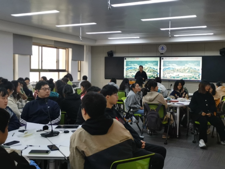11月17日上午3-4节课,建筑与规划学院王志鹏老师在教学主楼6楼教师教学培训中心开设了《名园鉴赏(双语)》公开课,艺术学院副院长黄朝晖、建筑与规划学院和艺术学院的数位老师观摩了课程。