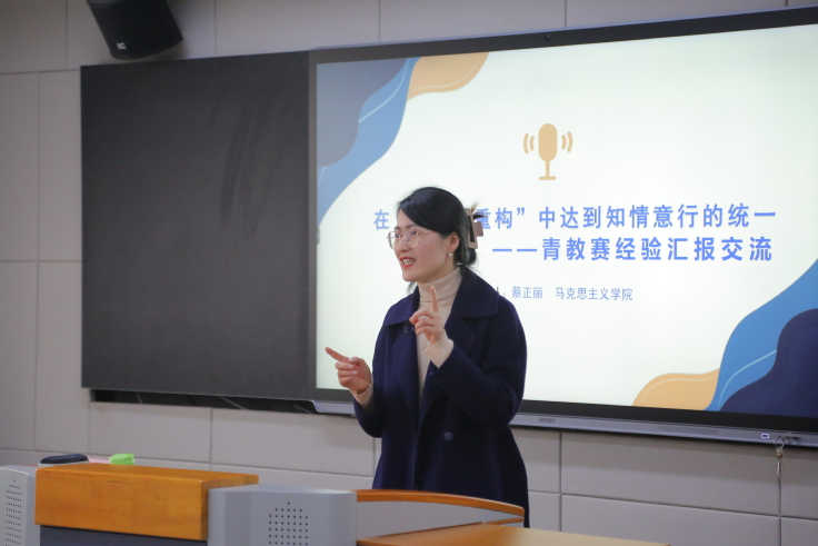 本网讯   11月18日下午,教师发展中心在南校区教学主楼六楼教师教学发展培训室举办学校教学学术系列活动,本次活动主题为“教师课堂教学比赛经验分享”,特邀荣获安徽省级线上教学新秀、安徽省高校思政课“精彩一课”、安徽省高校思政课教师党史说课暨教学展示比赛一等奖,安徽省第五届青年教师大赛二等奖的蔡正丽老师进行经验分享。