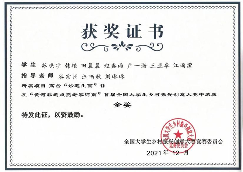 八月份河南突发灾情牵动整个团队的心,看到尽在咫尺的自然灾害,让谷宗州老师及学生们为河南人民感到揪心,于是团队内部自发的进行了捐款,为防汛抗洪驰援河南献上了自己微薄的力量。受突发的灾情影响,项目的选址和设计图稿以及方案都重新选择并设计。为了助力乡村振兴,团队重新选择高家台画家村为新的课题。突发状况推迟了整体的进度和实地调研时间,这个阶段团队不免非常紧张和迷茫。在他带领下,学生们夜以继日以最快的时间调整自身。在夜晚的台灯下恶补当地历史文化,在激烈的上下线会议上讨论,不断修改图稿的创作,软件操作技术的熟识,确定了新的创作思路和稿图方案。随着大赛不断深入,项目不断完善。在大赛邀请下,谷宗州老师带领团队前往安阳市林州市石板岩镇高家台村深入调查以创造出更贴合当地情况的设计推广方案。到高家台村后,他和学生们寄宿在当地村民家中。白天不断走访考察,晚上回来整理报告,条件虽然艰苦,但心是火热的。回校后,则根据考察报告调整设计方案,最终数个月的辛勤付出,换回的是社会的认可和学生激动的泪水。