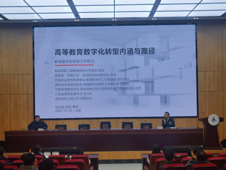 邓志良教授作了《高校数字化转型内涵与路径》的专题讲座,他从时代使命、回顾总结和转型路径三个方面,分析了数字化转型在服务人才培养和学校发展中的作用。从高等教育高质量发展的实际出发,诠释了当前进行数字化转型的必要性、教育数字化的内涵以及与教育信息化的关系,通过对“信息化与数字化”“教育新生态”“数字化转型”等关键词的辨析,指出转型不仅是数字硬件设施建设、信息化管理与服务,更应重点聚焦人才培养。邓教授的报告聚焦高校数字化转型中广为关注的问题,对学校领导、职能部门的管理人员和院系广大教师等不同层面开展数字化转型都有很好的指导意义。