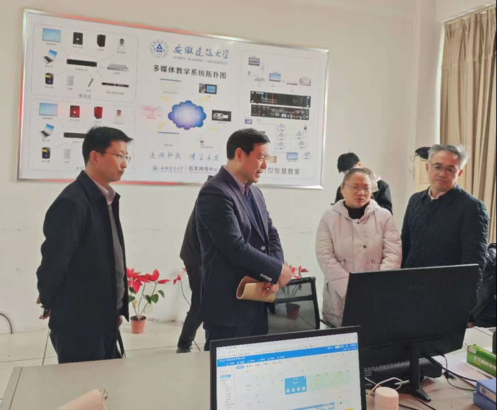 在多媒体监控中心,黄显怀详细查看了教室监控系统、在线巡课平台、智慧教室教学分析数据,充分了解教学信息化建设以及教学日常运行情况等。他指出,教育教学数字化、智能化是学校高质量发展的必然要求,是有效提升教师教学能力和教育教学质量的先手棋、突破口。