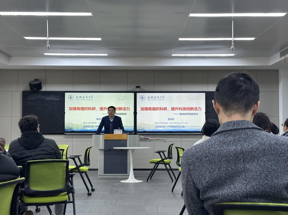 本网讯 为深化师德师风建设,提升青年教师科研创新能力,3月14日下午,教师发展中心在徽学楼举办新入职教师专题培训。校人事处副处长盛守奇、科技处处长雷经发分别围绕“大力弘扬教育家精神,加强教师队伍建设”和“加强有组织科研,提升科技创新活力”作主题讲座,50余名新入职青年教师参加培训。