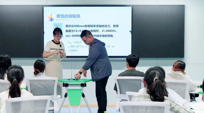 参加教学创新大赛,不仅是一次展示教学成果的机会,更是推动教学改革的重要契机。周老师将备赛过程中形成的创新理念和方法,积极应用到日常教学中,在力学课堂上开展了一系列以赛促教的实践探索,取得了显著成效。教学理念上,周老师实现了从“以教为主”到“以学为主”的转变。她更加注重学生的主体地位,将教学的重点从知识传授转向学生能力培养和素养提升。通过创设真实的问题情境,激发学生的好奇心和求知欲,引导学生主动思考、积极探索,培养学生发现问题、分析问题和解决问题的能力。教学方法上,她根据不同的教学内容和学生特点,灵活运用多种教学方法。以赛促教的实践使力学课堂焕然一新,学生学习积极性大幅提升,课堂氛围活跃。