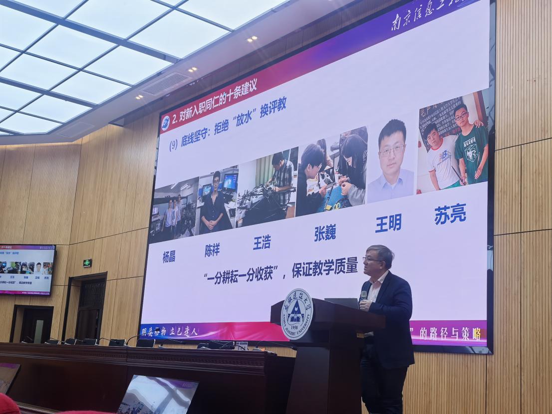 裴世鑫教授结合自身20余年教学经验和多年来督导案例,为新教师指明了成长路径和分享了十条成长箴言。他强调,优秀教学既要守住规范性底线,更要突破创新性边界。新教师在成长过程中,需端正态度、认真备课,这是教学的根基;要不断观摩听课,学习优秀教师的教学技巧,优化自身授课方式;更要虚心请教、持续改进,在反思中不断提升教学水平。
