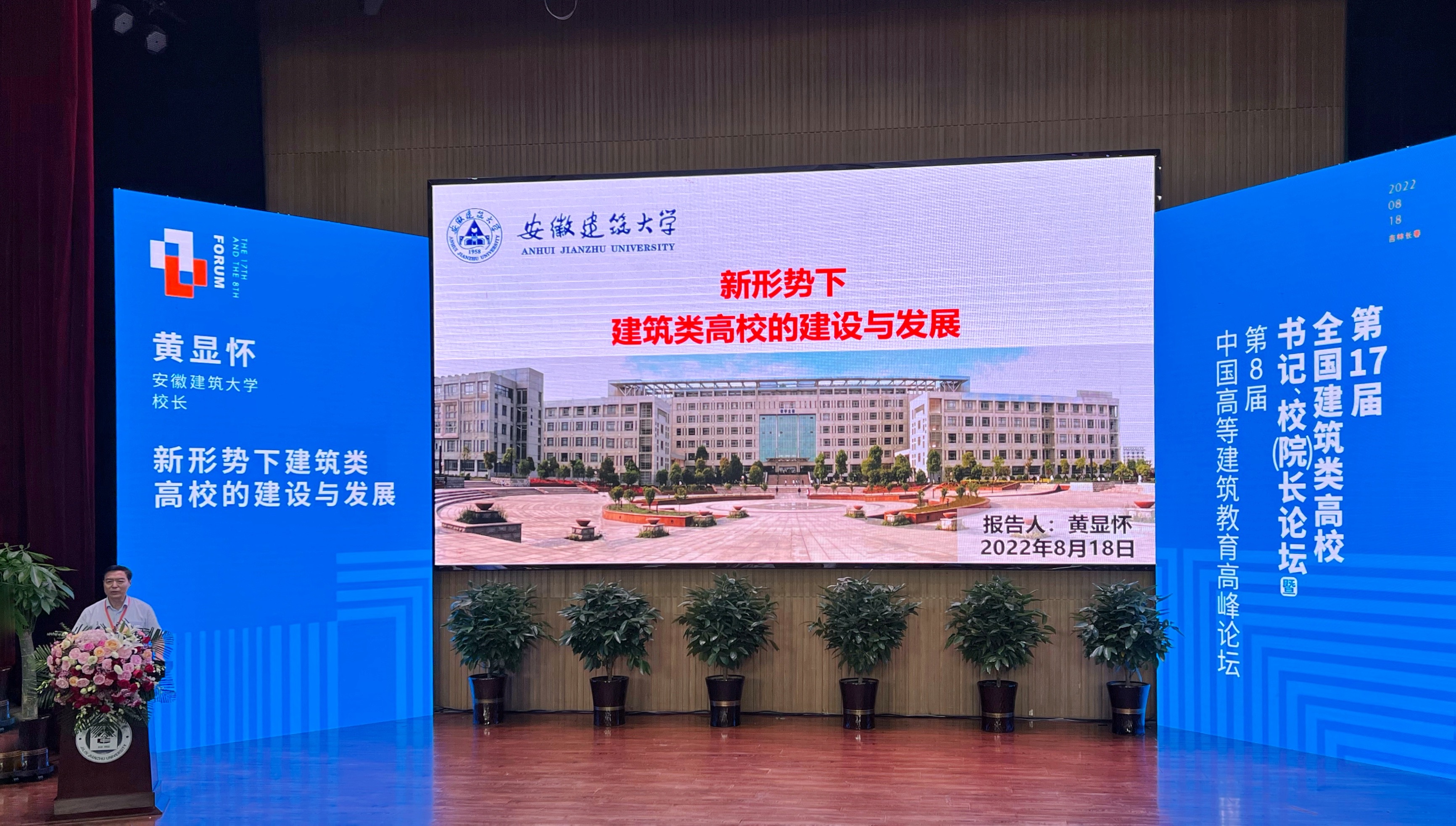 本网讯 8月18日,第17届全国建筑类高校书记、校(院)长论坛暨第8届中国高等建筑教育高峰论坛在吉林建筑大学举行,本次论坛的主题是“新时代建筑类高校教育改革与创新”。住房和城乡建设部人事司副司长何志方、吉林省教育厅党组书记、厅长张洪彬、中国建筑工业出版社社长高延伟等同志,北京建筑大学、西安建筑科技大学、天津城建大学、沈阳建筑大学、山东建筑大学等近20所高校的书记、校(院)长齐聚一堂,共谋发展。校党委副书记、校长黄显怀率队参加论坛并应邀发表《新形势下建筑类高校的建设与发展》主旨演讲。