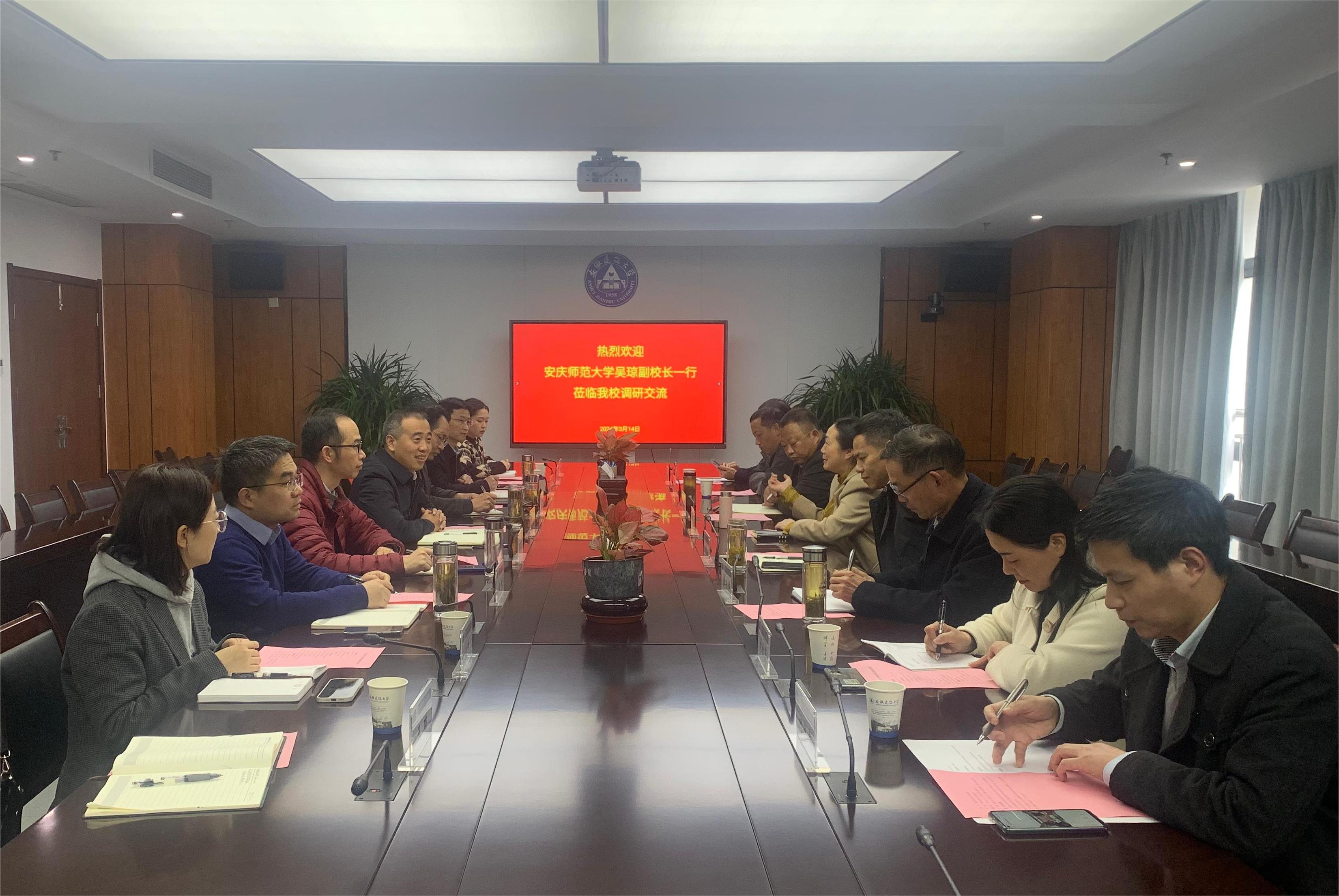本网讯 3月14日,安庆师范大学党委常委、副校长吴琼一行8人来校调研交流。校党委常委、副校长闵杰,教务处、机关一党委、信网中心等单位负责人及评建办工作人员参加会议,会议由闵杰主持。