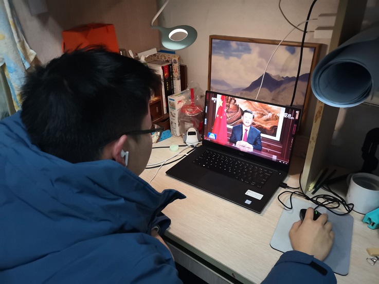 本网讯 12月31日晚,土木学子满怀爱国情怀,自发收看国家主席习近平2021年新年贺词,为中国在2020年的大作为、大成就喝彩。