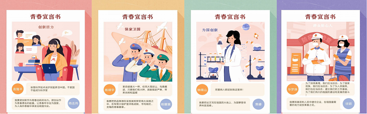在活动中,同学们找到了自己希冀的职业,写下了为祖国奋斗和不懈努力的青春誓言。无奋斗,不青春,青春由磨砺出彩,人生因奋斗而升华!这就是当代青年的青春誓言,青春不老,岁月不巧;只争朝夕,不负韶华!(图/文:王月竹 张彦晨 杨逸凡;审核:胡燕青) |