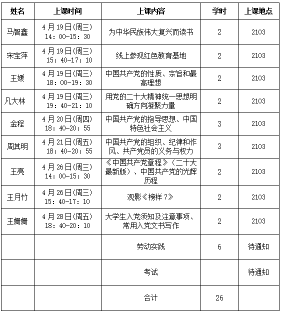 为加强对入党积极分子的培养,引导入党积极分子深入学习党的二十大精神,深刻领悟“两个确立”的决定性意义,进一步增强“四个意识”、坚定“四个自信”、做到“两个维护”,做马克思主义理论的坚定信仰者、积极传播者、模范践行者,争做堪当民族复兴重任的时代新人,特开展2023年春季入党积极分子培训班,具体安排如下: