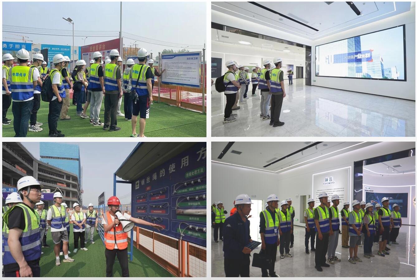 在项目工作人员讲解下,同学们通过现场观摩深入了解项目进展、文明施工、安全质量保障和企业文化等方面内容。随后,同学们走进园区,观摩了综合楼、道路、绿化等基础设施建设及长三角G60科创走廊招商展示厅。