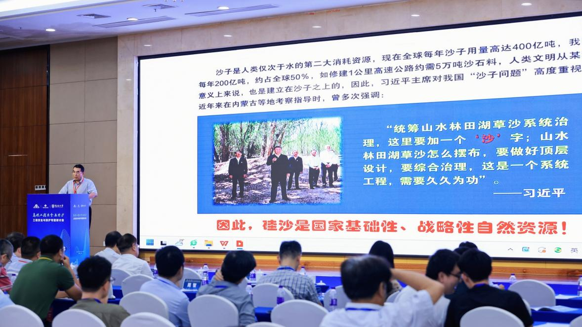 会议围绕岛礁工程安全与防护领域开展了热烈讨论,中国工程院欧进萍院士、王明洋院士等应邀参会并做了大会报告。我校蔡国军教授作了题为“荒漠沙资源开发与综合利用研究”的学术报告,在大会引起强烈反响。
