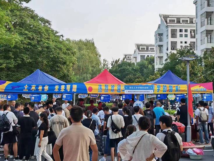 土木有你 未来可期 学院领导来到迎新点、走进宿舍,迎接新生,看望迎新工作人员和学生志愿者,询问实时报到数据,要求现场工作人员为新生提供优质服务,及时解决新生的困难。院领导与新生热情交谈,给出建议和指导,勉励大家争做担纲民族复兴大任的明日栋梁。23级智能建造专业新生金祉彤说:“我在报到展板上了解到学院的发展和取得的丰硕成果,看到了考研光荣榜上的优秀学长学姐,很激动成为土木学院大家庭的一员,感谢相信我也可以在这里遇到更美好的自己。”
