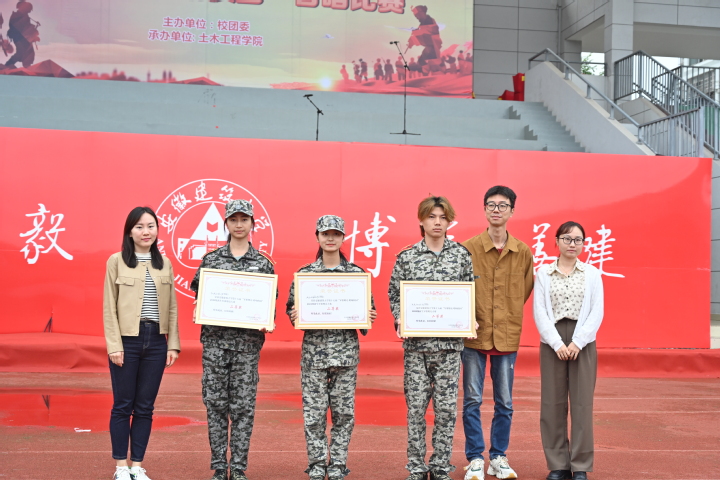 各评委老师们从精神面貌、演唱主旨、综合编排等方面为每支队伍进行打分。最终,土木学院与艺术学院代表队荣获一等奖,机电学院、环能学院、电信学院代表队荣获二等奖,材化学院、经管学院、建规学院、公管学院、数理学院和外国语学院代表队荣获三等奖。