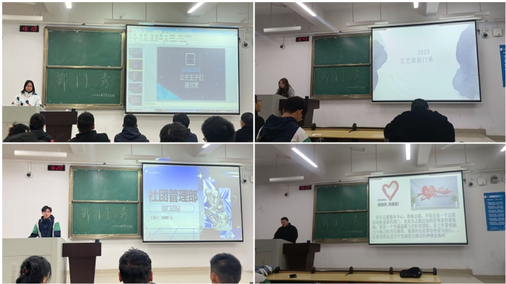 本次活动以“同舟有幸 踏梦前行”为主题,主要通过PPT或视频图集的形式介绍各部门举办的特色活动以及工作职责。大家纷纷表示,希望在学生会这个有理想、有纪律、团结向上的集体中不断完善自我、磨练自我、施展自我;周全地考虑问题,蜕掉稚嫩、乐于奉献、宽阔胸怀,逐步走向成熟;也相信只要大家团结一致、凝心聚力,一定会获得成功。学生会各部门将以一颗真诚服务同学的心,良好的工作素质,扎实的工作作风,强大号召力与凝聚力,把工作做到更好,服务学院的广大师生!