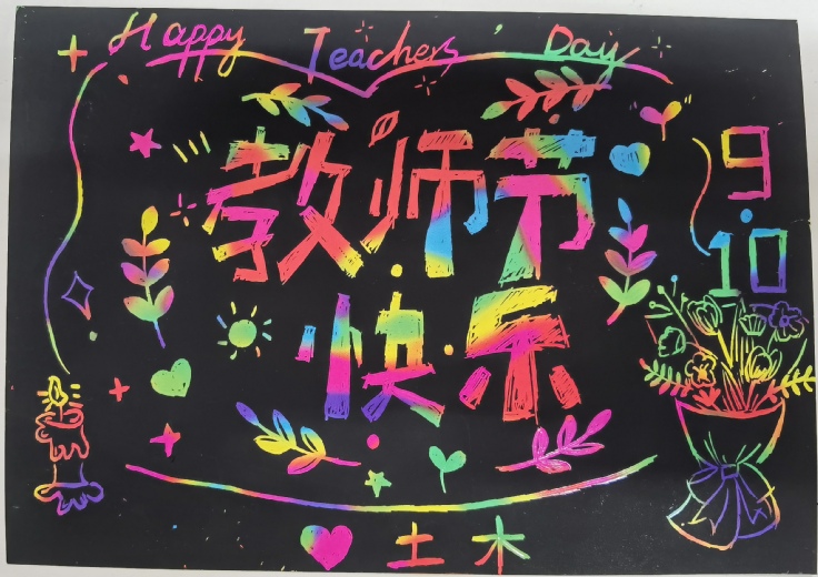 以笔为媒,书写师恩。一张充满创意的刮版画,一面用心绘画的黑板报,一句深情的祝福,都是同学们对老师最美好的祝福。