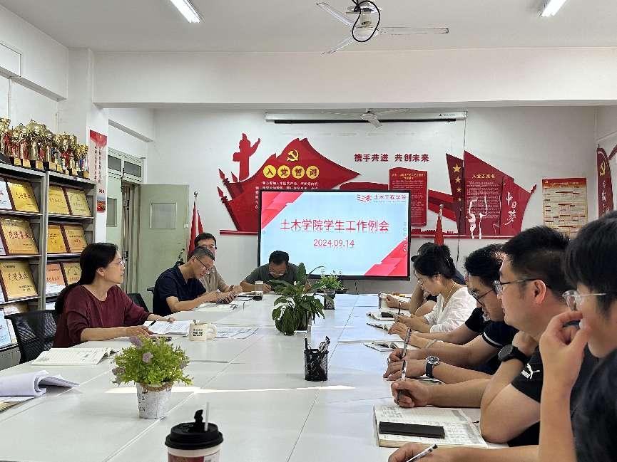 本网讯 9月14日,土木学院在徽匠楼1306会议室召开九月学生工作例会暨安全工作专题会议,学院领导班子、全体专兼职辅导员共同参会,会议由学院党委书记王媛主持。
