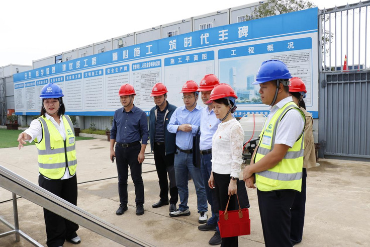 参观结束后,项目经理赵敏捷和项目书记侯静对项目的整体建设情况进行了详细汇报。张晓燕对项目的党建工作和扬尘治理成效给予了充分肯定。蔡勇在座谈中表示,项目党建工作用心、用情、用力;党组织活动真学、真用、真实;现场扬尘治理工作有组织、有队伍、有设备、有措施。付芝兵指出项目生产工作、党建工作要创新进取,以创新推动生产、以创新促进党建与生产深度融合。随后,秦荣水就红色工地试点建设与侯静展开了进一步交流,具体内容包括红色工地创建中的典型案例分享与经验推广、党建工作与生产经营的深度融合、如何有效调动群众参与并推动文化建设、监督与考核机制的落实与优化,以及试点过程中面临的主要问题与针对性的改进措施。