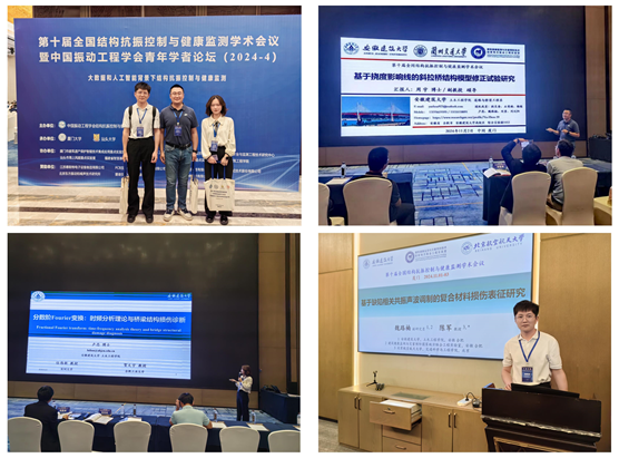 本次会议参会总人数700余人,其中包括院士6人,国家级人才40余人,会议组织了5场院士报告、17场大会主题报告、67场邀请报告和300余场分会场报告。周宇副教授和卢恋博士在分会场【监测与评估的创新方法:轻量化】分别作“基于挠度影响线的斜拉桥结构模型修正试验研究”和“分数阶 Fourier 变换:时频分析理论与桥梁结构损伤诊断”报告,魏路楠特任副研究员在分会场【传感器专题 1:超声无损检测】作“基于缺陷相关共振声波调制的复合材料损伤表征研究”报告,三个报告得到与会专家学者的广泛关注,并围绕相关研究内容展开了深入的研讨和全面的交流。