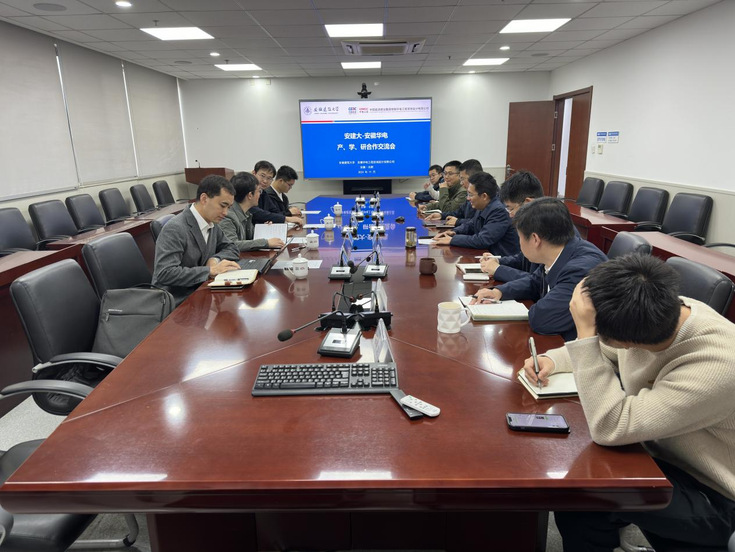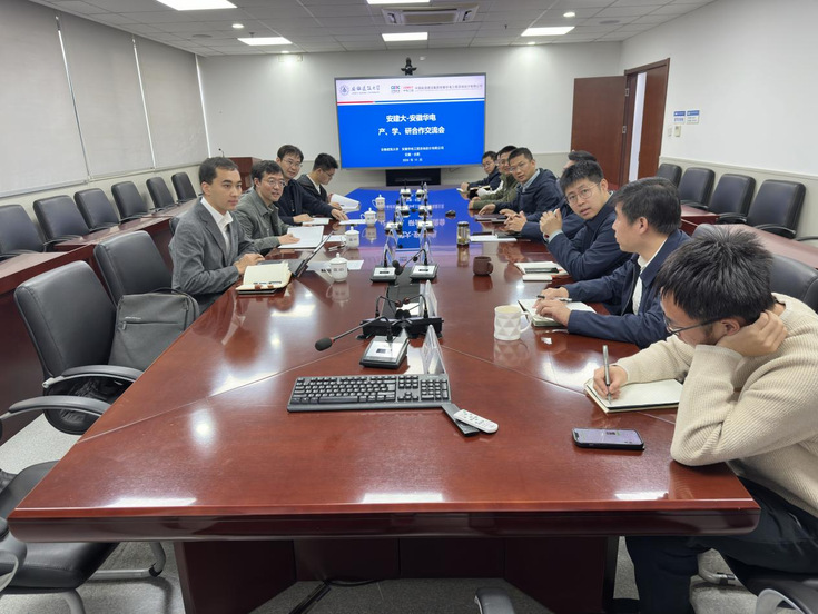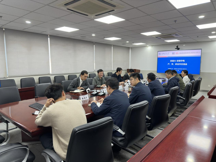 安徽华电公司副总经理吴睿介绍了公司业务范围、科技创新等公司概况,并且就公司和学院目前合作项目进行了介绍,希望与学院在产学研合作、科技创新等方面开展深度合作,实现优势互补、资源共享、合作共赢。杨雪锋主任对双方合作项目进展情况进行了详细介绍,肯定了双方合作以来取得的科研成果,强调以产学研合作为契机,推动校企全面合作、共同进步。