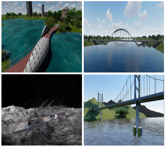 《“戢鳞潜翼,蛟龙伏水龙鳞元素赋能的大跨斜拉桥设计》(参赛学生:陈佳晗、杜佳硕、武天润、周明阳、尹阳)、《“生命韵律”科创园区跨河桥》(参赛学生:童天麒、朱洵、陈思雷、戎哲皞、屈海川)、《曲直相连》(参赛学生:何家富、曹毅恒、张昕、刘余钱、刘欢和《万顷桥》(参赛学生:陈镓祺、王腾宇、汪严雨、杨畅)荣获设计设意类(桥梁设计组)三等奖。《珊瑚宫心海》(参赛学生:刘余钱、何家富、曹毅恒、张昕、刘欢)荣获设计设意类(人行桥组)三等奖。《渡暑消寒一种新型桥隧协同控温系统》(参赛学生:张昕、尹雪斌、郭志苗、毛嵩)荣获创新创客类三等奖。