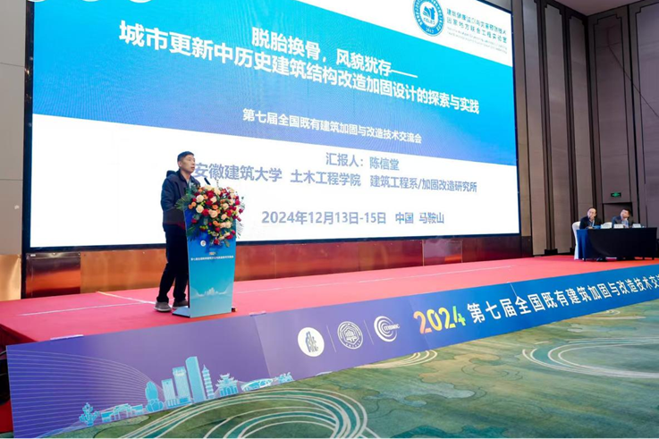 此次会议邀请了全国工程结构设计、施工、科研、材料生产、设备制造等领域的专家学者,介绍了既有建筑加固与改造的最新理论研究成果、典型工程结构加固改造的设计施工案例、检测与鉴定新方法、加固改造新材料的研发与应用以及检测鉴定与加固改造规范标准编制与修编等。大会旨在进一步促进我国城市更新中既有建筑检测、鉴定、改造、加固等工作与设计、施工、材料、设备等专业领域的技术交流,推动业界融合、各方共赢。 大会精心设计了多元化的议程板块,包括46个行业技术与学术报告和36个研究生报告。我院陈信堂教授作“脱胎换骨,风貌犹存——城市更新中历史建筑结构改造加固设计的探索与实践”报告,周宇副教授作“斜拉桥影响线识别与模型修正试验研究”报告,两个报告展示了学院在既有建筑加固与改造领域的深厚研究底蕴和前沿探索,得到了与会专家学者的广泛关注,并围绕相关研究内容展开了深入的研讨和全面的交流。