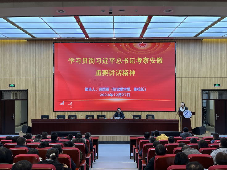 蔡国军指出,习近平总书记考察安徽重要讲话精神意义重大、内涵丰富,具有极强的政治性、思想性、指导性和针对性,为做好当前和今后一个时期的各项工作指明了前进方向、提供了根本遵循,要深刻认识习近平总书记考察安徽的重大政治意义、战略意义、理论意义、实践意义,自觉把思想和行动统一到习近平总书记重要讲话精神上来,坚定拥护“两个确立”、坚决做到“两个维护”,增强历史主动,勇担时代重任,奋力推进学校高质量发展。