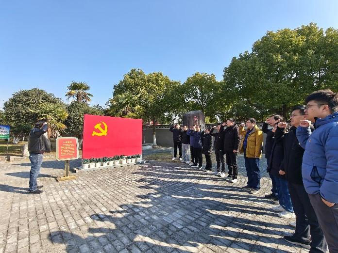 最后,测绘系教师党支部书记施贵刚教授对此次共建活动进行了总结,并带领双方党员重宣入党誓词,庄重的誓言在纪念馆内久久回荡,为本次支部共建活动画上圆满的句号。