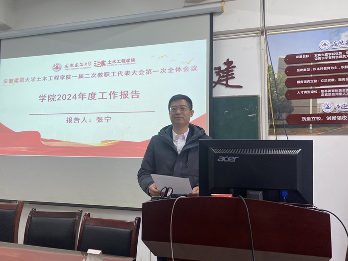 院长张宁作学院2024年度工作报告。报告涵盖党建工作和发展工作两部分,党建工作方面包括强化理论武装,坚定理想信念;守牢阵地防线,做好舆论宣传;坚持对标对表,推进党建“双创”;坚持严的基调,高质量完成党员发展工作;夯实责任,推动全面从严治党向纵深发展;紧盯巡察巡视反馈,做好整改“必答题”等。发展工作方面则涉及打造优势专业,教育教学成果再创新高;聚焦教育改革,研究生培养水平持续提升;加强内涵建设,科研水平显著提高;内培外引,师资队伍不断壮大;五育并举展风采,群团工作再上新台阶等内容报告全面回顾了学院2024年的工作成效,并对学院未来工作进行了展望。