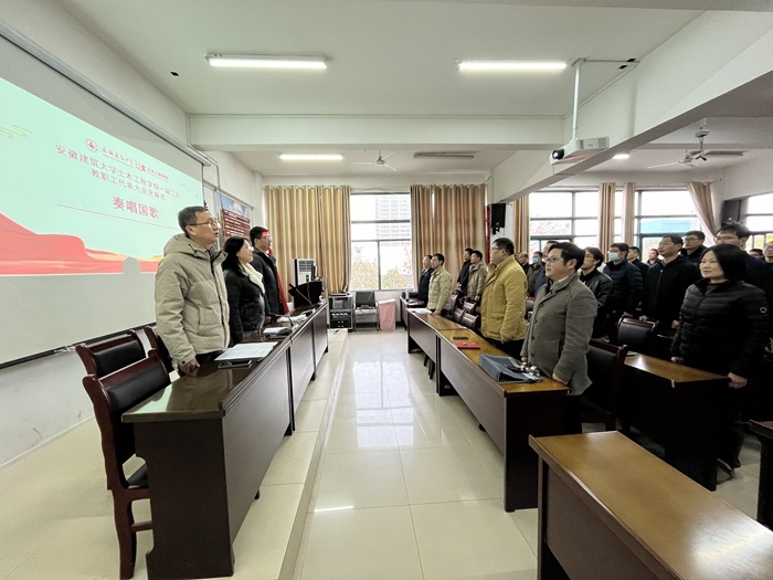伴随着激昂的国歌声,大会正式拉开帷幕。王媛指出,2024年,土木工程学院党委始终以习近平新时代中国特色社会主义思想为指引,切实强化党建引领作用,扎实推进基层党组织建设工作,积极务实,激励全院上下在政治上保持同向、思想上做到同心、行动上实现同力,全力以赴推动党建工作与业务工作深度融合,实现高质量发展。