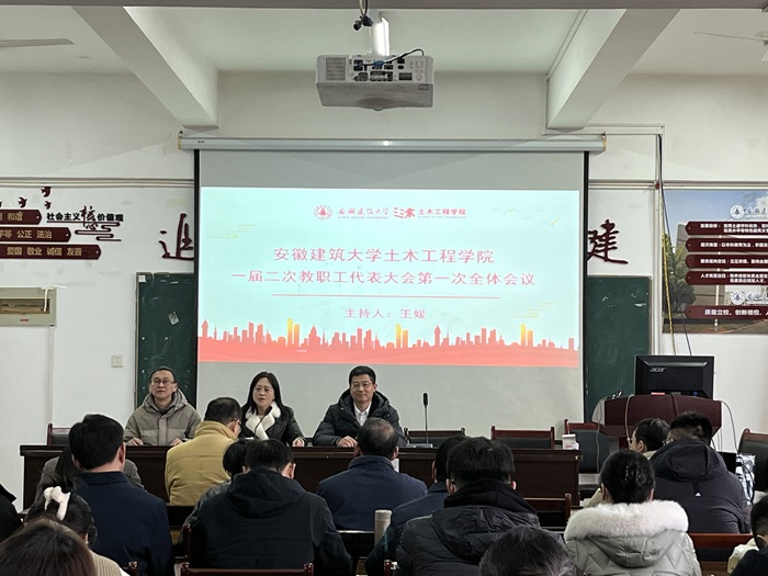 本网讯  19日下午,土木工程学院一届二次教职工代表大会在徽匠楼 2306 会议室隆重召开,学院领导、全体正式代表以及列席代表齐聚一堂。会议由学院党委书记王媛主持。