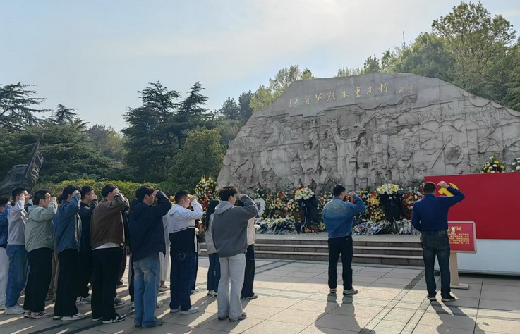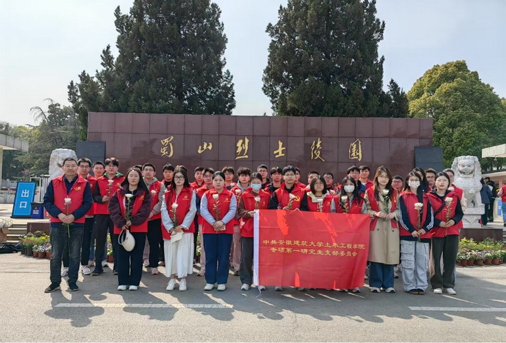 本网讯 为了把学习贯彻习近平新时代中国特色社会主义思想不断引向深入,4月2日,土木工程学院土木水利工程专硕第一研究生党支部赴合肥大蜀山烈士陵园开展"清明祭忠魂砺初心使命,薪火传学子铸时代脊梁"主题党日活动。 支部全体党员手持白菊,沿191级"丹心台阶"拾级而上。花岗岩浮雕墙上,渡江战役千帆竞发的磅礴气势让党员同志们屏息驻足,大家在革命烈士纪念碑前举行庄重的缅怀仪式,向镌刻着"革命烈士永垂不朽"的纪念碑行三鞠躬礼,面对鲜红党徽再次高举右拳。在"为共产主义奋斗终身"的郑重宣誓中,红军精神、抗战烽火、改革新篇的光辉历程穿透时空,激荡着新时代党员的赤子情怀。
