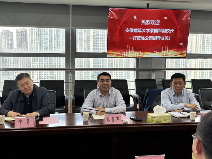 本网讯 4月10日,为了进一步深化校企合作、推动2025届毕业生就业工作和产学研协同创新,校党委常委、副校长蔡国军率队前往中钢集团马鞍山矿山研究总院股份有限公司进行调研交流,学校科学技术处、科技成果转化处、就业工作处、土木学院、环能学院负责人以及安徽省智能地下探测重点实验室、安徽省环境岩土工程研究中心科研人员等陪同前往。中钢马矿院党委副书记、总经理徐修平热情接待了蔡国军一行。