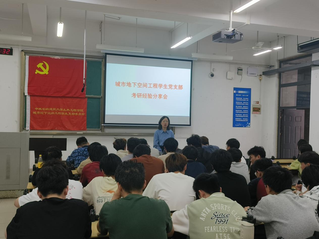 本网讯 为充分发挥学生党员先锋模范作用,助力低年级同学科学规划考研路径。近日,城市地下空间工程学生党支部在逸夫楼5106开展“研途筑梦·先锋领航”考研经验分享会。活动邀请校研究生招生办公室马新新老师及支部4名2021级考研成功党员进行经验分享。