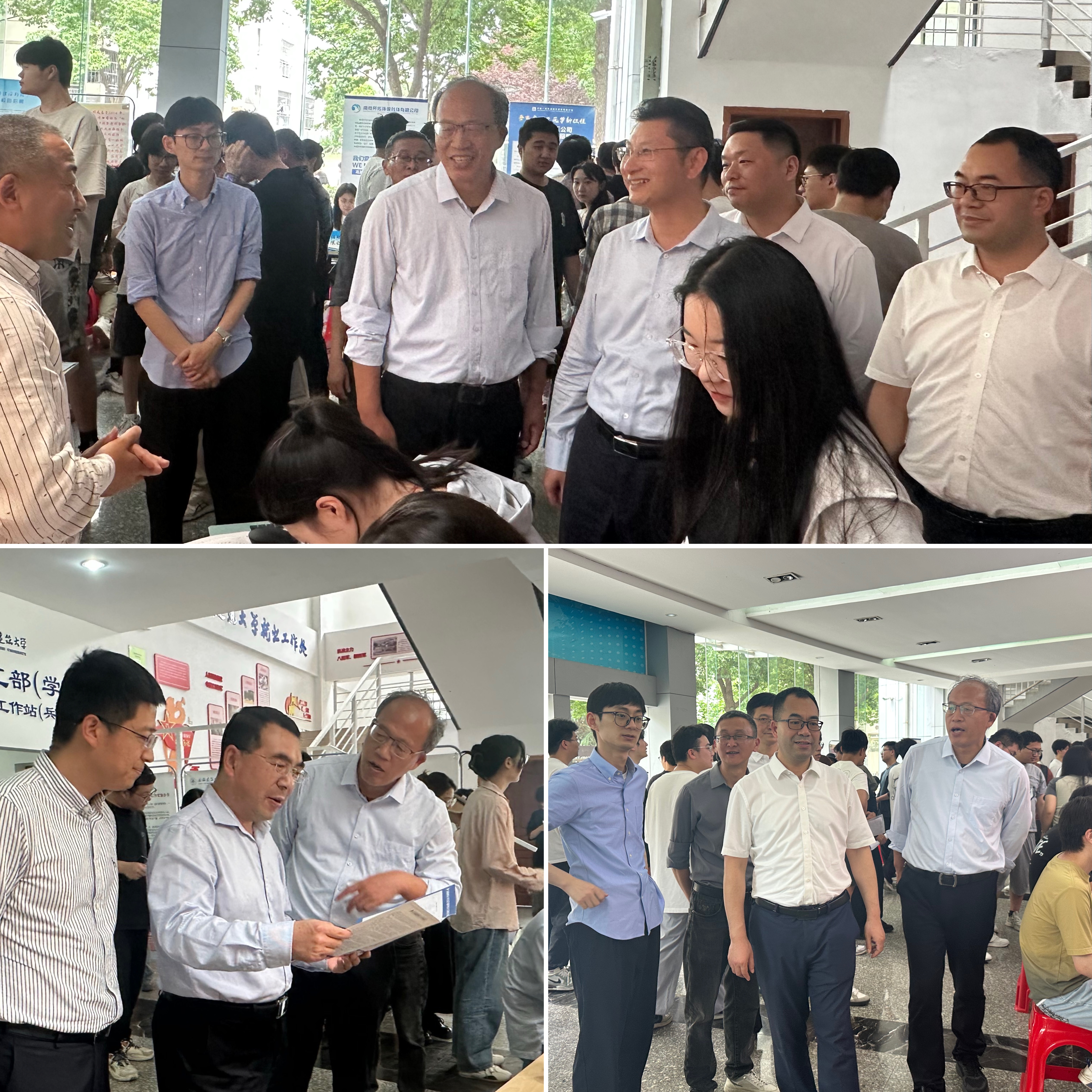 活动伊始,马文革深入招聘会现场,关心活动组织开展情况,并与参会企业代表和毕业生亲切交流,详细了解行业发展动态、用人需求以及同学们的求职状况。他鼓励同学们要树立正确的求职理念,充分展现建大青年“能吃苦、善创新、敢担当”的优秀品格,积极投身于社会实践中去,为美好安徽建设贡献自己的一份力量。蔡国军、杨科也分别与现场企业和毕业生进行深入交谈,关切询问招聘和求职情况。
