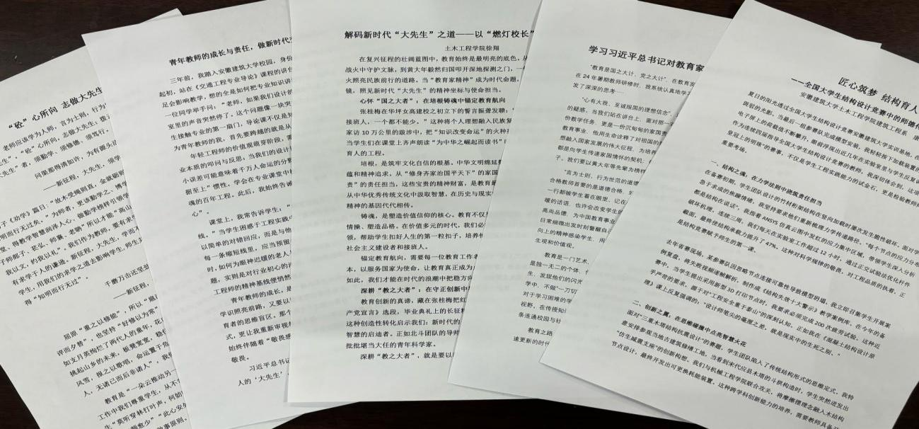 本网讯 为深入贯彻学习全国教育大会精神,全面落实习近平总书记关于教育的重要论述精神,大力弘扬教育家精神,近日,土木学院分工会开展主题为“弘扬教育家精神,做强国建设的‘大先生’”师德师风征文比赛。
