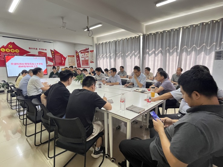 本网讯 7月1日,学校科技处处长雷经发、副处长洪涛等一行莅临土木工程学院,就学院科技工作开展专项调研指导。会议由土木工程学院院长张宁主持,学院副院长陈东、施国栋,骨干教师参加会议。