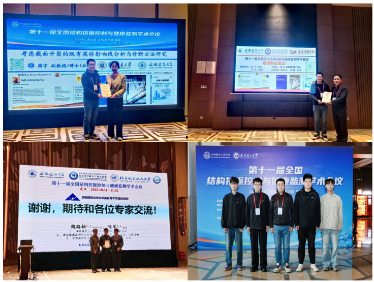 本网讯 2025年10月31日至11月2日,由中国振动工程学会结构抗振控制与健康监测专业委员会主办,武汉理工大学承办的“第十一届全国结构抗振控制与健康监测学术会议”在湖北武汉圆满召开。土木工程学院周宇副教授、魏路楠特任副研究员带领研究生参加了此次学术会议。